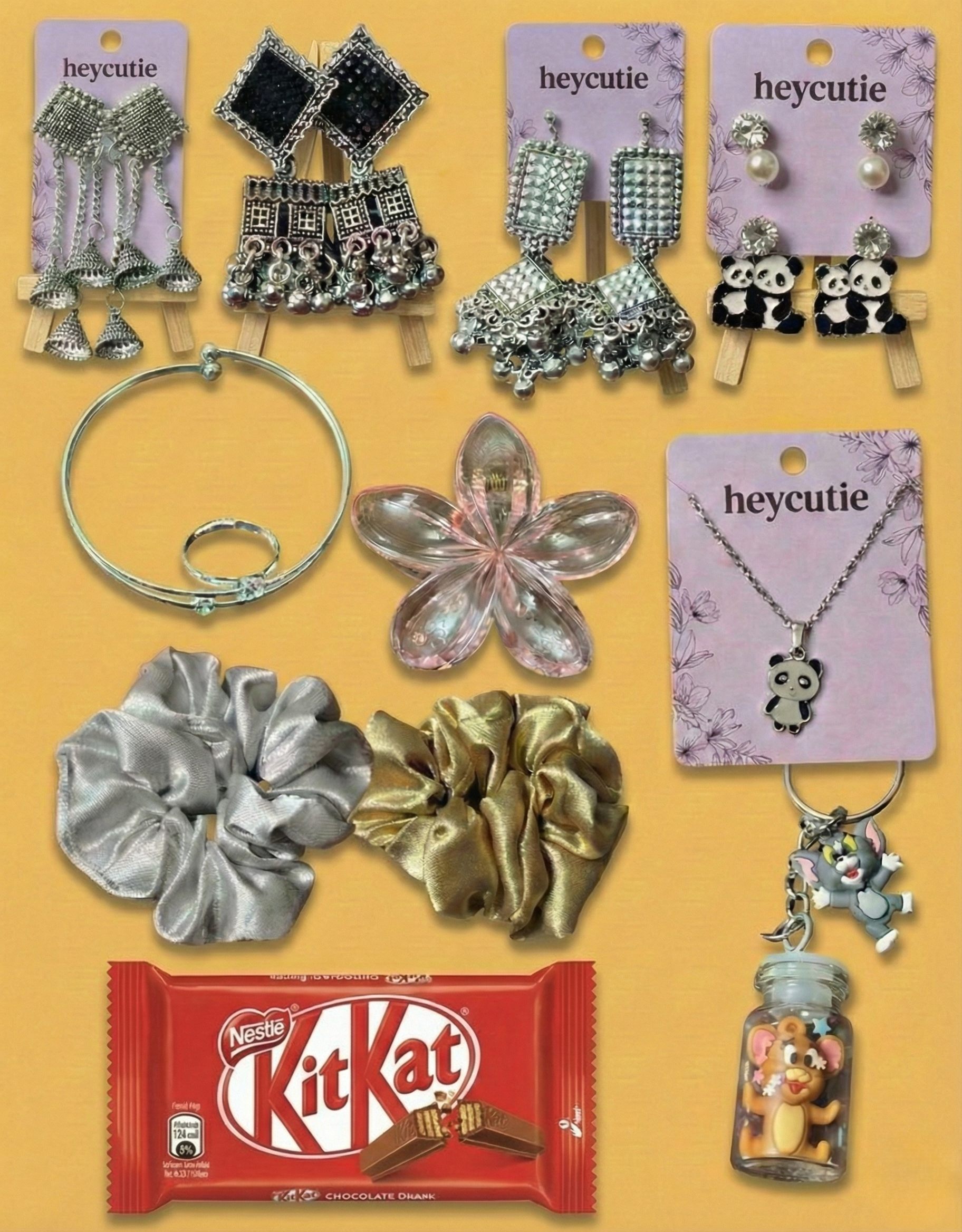 - Panda stud & pearl earring set β Crystal and pearl studs paired with panda-shaped earrings on a jewellery card.